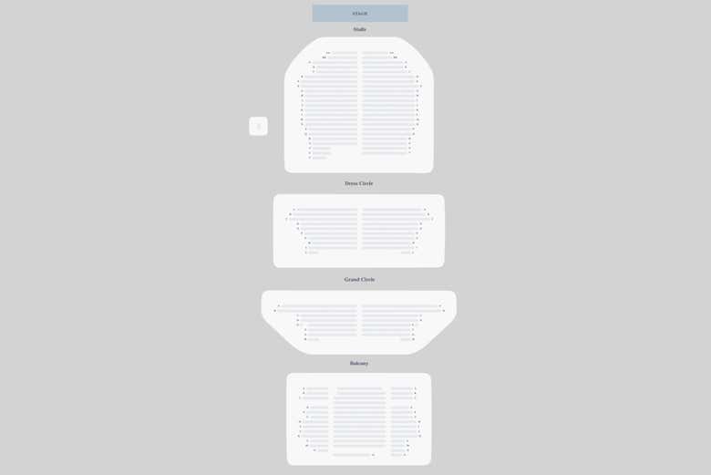 Reservando esta entrada, disfrutaréis de un asiento en la zona de Balcony, Stalls o Dress Circle, según elijáis. Podéis ver su ubicación consultando el siguiente plano del patio de butacas: